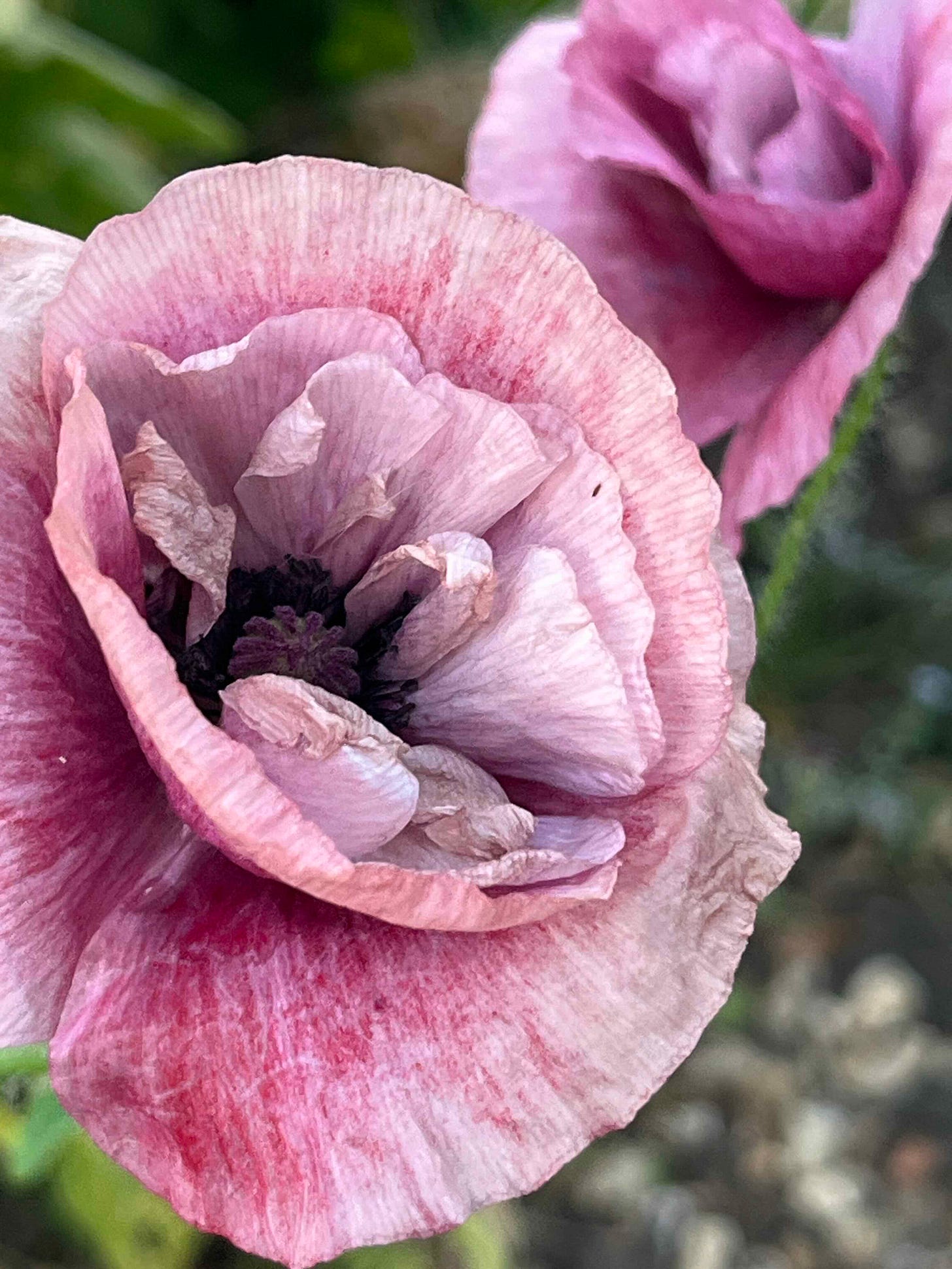 The beautiful ‘Amazing Grey’ poppy pictured above actually illustrates a failure rather than a success, which shows how much the camera can lie. I sowed fresh seed of this poppy straight into the ground in early spring and not one germinated, probably washed away in all the rain we’ve had. This one is a self-seeded flower from last year’s crop, one of only a handful that popped up this year, and as you can see it has started to change colour, reverting to the wild red Papaver rhoeas as it isn’t genetically stable. The distinctive lavender-grey colour, shown below, is how they bloom in their first year, but in subsequent years they start morphing into a different colour range - no less beautiful because of it I think.